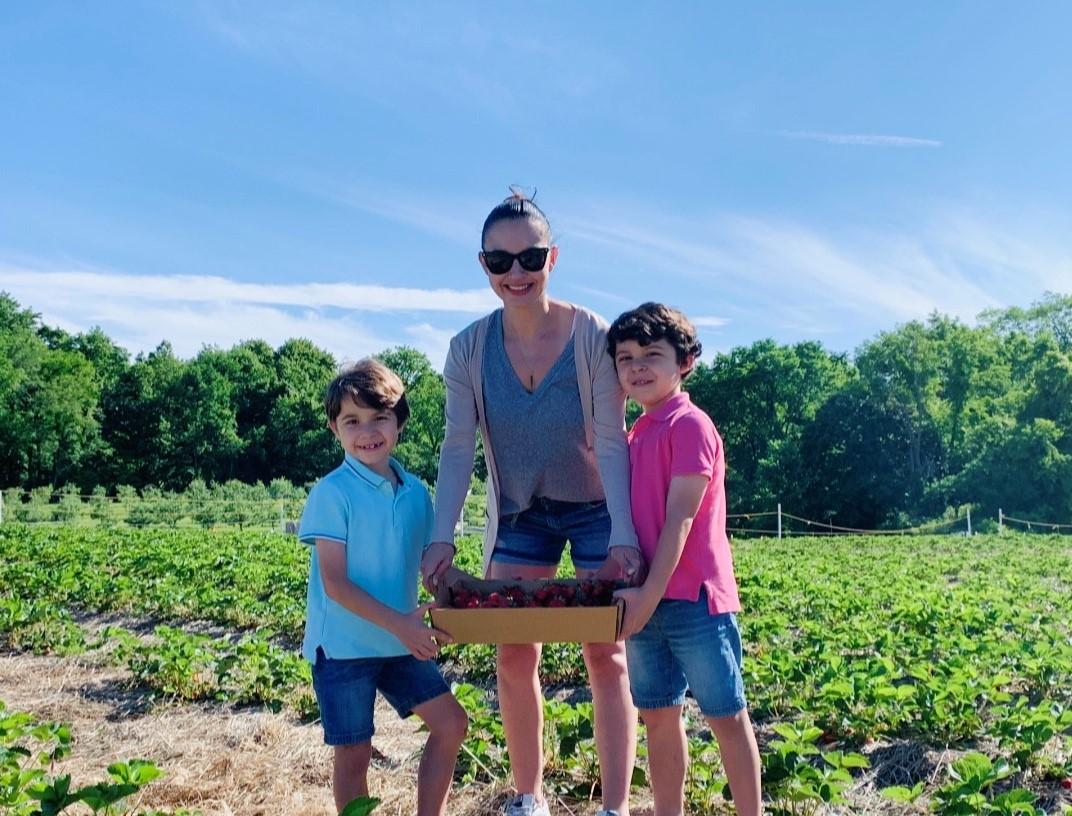 Ana Maria strawberry picking with the boys.