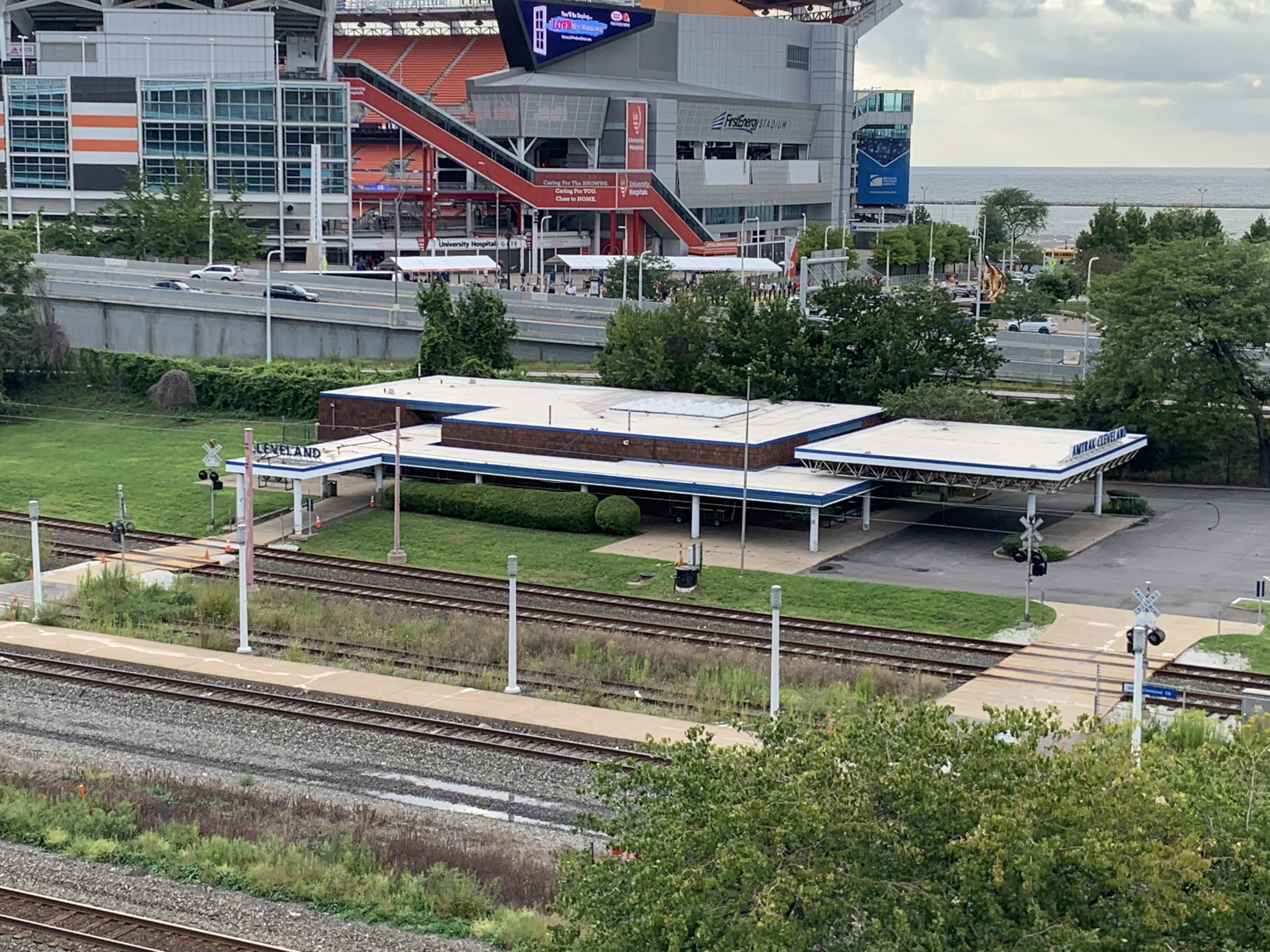 I have lived in NE Ohio for 50 years, and I missed it! I’m sure my relatives in the car behind me thought I was crazy when I circled the block for the 2nd time while they were looking out the window at the train on the tracks next to us. Why can’t Amtrak, or even the city of Cleveland, get better signage to help folks find the parking lot for Amtrak? It’s tucked in between I-90 and the Browns stadium and below the bluff where CIty Hall sits. Please don’t rely on GPS, as my WAZE was yelling at me to go in the opposite direction, and we would have missed the train all together. Click here to see proof that others find it as hard to find the parking lot as I do (you’re not crazy if you do).