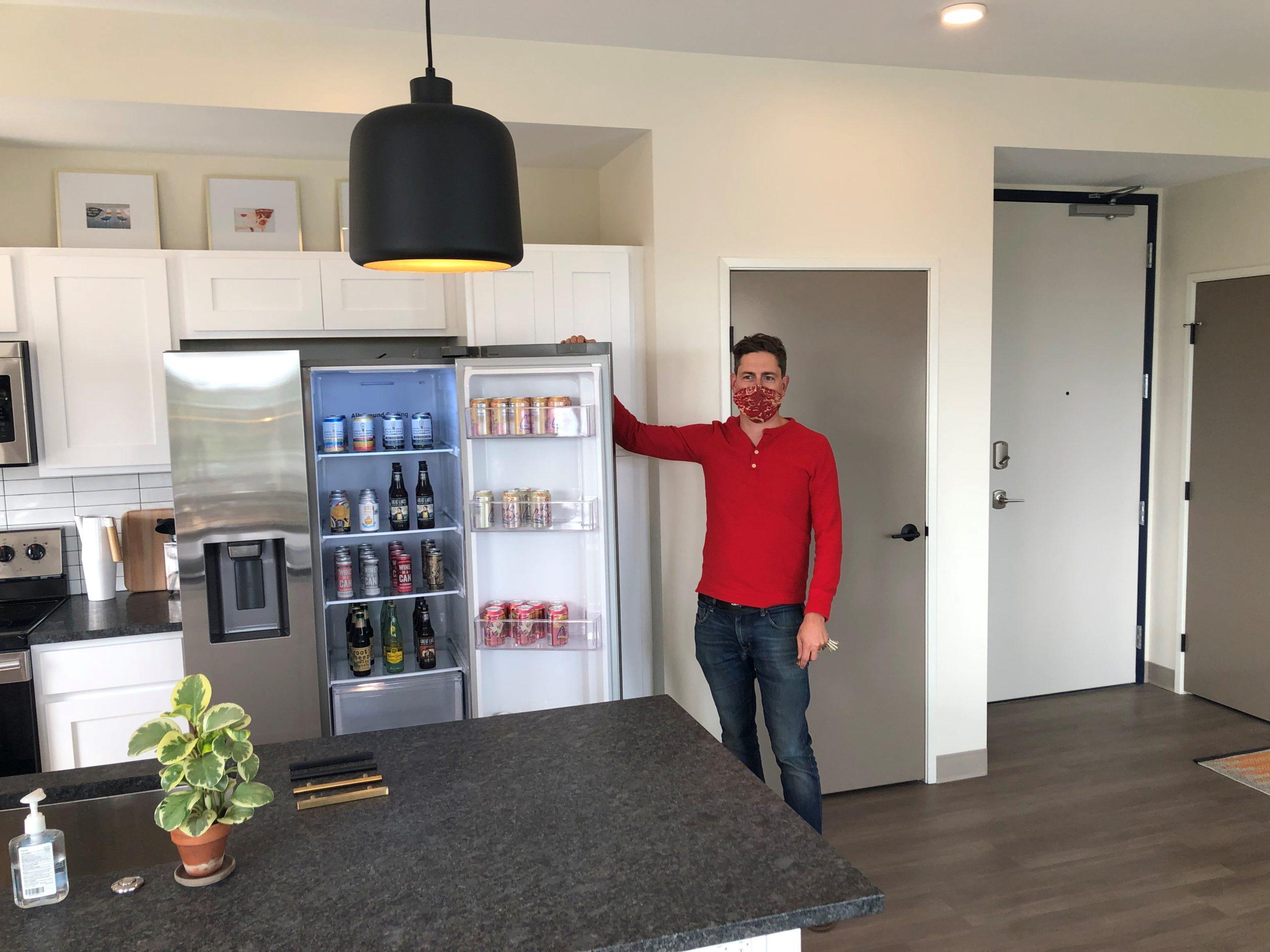 What a cool view from the outdoor deck!And the fun on our tour continued! Graham also happens to be the owner of ManCan Wine and was eager to share a happy hour with us from the stocked fridge in the model suite.