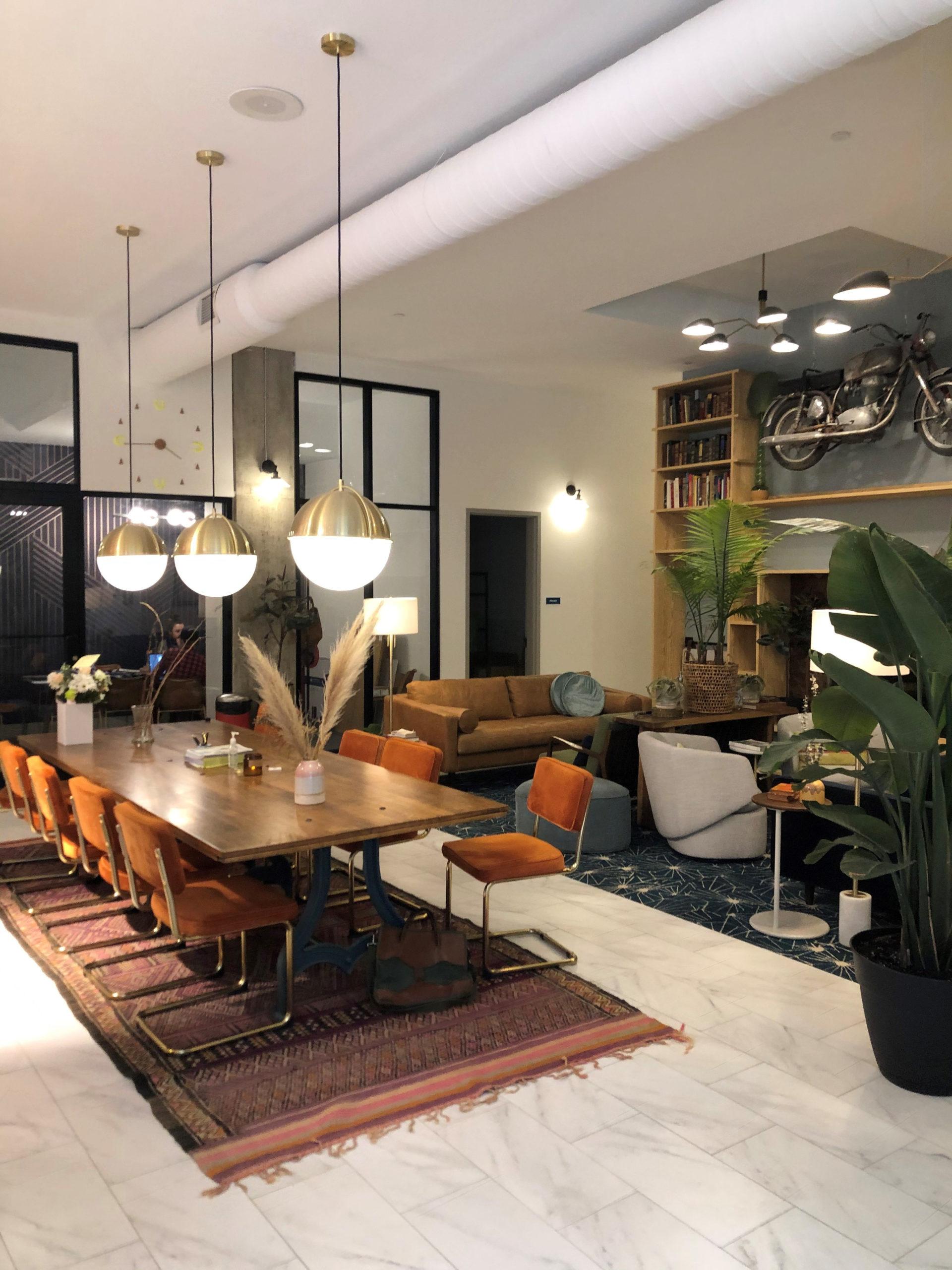 A total of 158 units ranging from $1200-$3800/month with so much personality and fun that when you walk inside you just have to smile. Every floor is different and the elevators are lined with faux leather and hung with sconces! The community “living room” in Church pairs West Elm and authentic mid-century modern furnishings. In both buildings you’ll find original artwork with a plaque beside sharing artist name/info, interiors painted with Sherwin Williams colors and kitchens feature top of the line Moen faucets giving nods to and love for our local Cleveland companies.