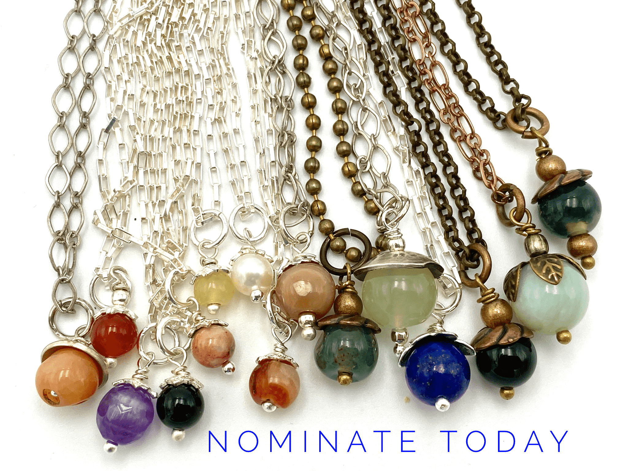 “As is sometimes the case with inspiration, Seeds of Gratitude originated from a painful experience. In January of this year, one of our adult sons, David, was diagnosed with type 1 diabetes. He spent five difficult days and nights in the ICU before beginning his life-altering journey into a new world of medical miracles. I was so grateful that he was going to be able to live a relatively normal life, and also deeply appreciative of the doctors and nurses attending to his needs, his girlfriend Sarah who never left his side, day or night and the regular visits from friends stopping by with a kind word and gentle smile. It was then that the Seeds of Gratitude necklaces were born … my way of giving thanks to all of those who had helped David and helped me through this trying time. These Seeds of Gratitude necklaces are elegant in design and concept. Using traditional metal forming tools and supplies (oval disc cutters, files, dapping sets, texturizing hammers), chains of silver, copper or brass are combined with natural gemstones, each chosen for their symbolic meaning, often connected to a story of generosity or selflessness that has touched my heart and nourished my soul. The current healthcare crisis has afforded me the opportunity to accept nominations for first responders, teachers and doctors and nurses on the front line. And as of mid July, I’ve sent out 132 packages with an ultimate goal of 200. There are so many people that deserve a little surprise present!   I think some people think it is a gimmick or that there is a catch and will be on some email list forever or something.  It isn’t and I hoipe that your sharing my story on your blog will help validate that there are no strings attached!”